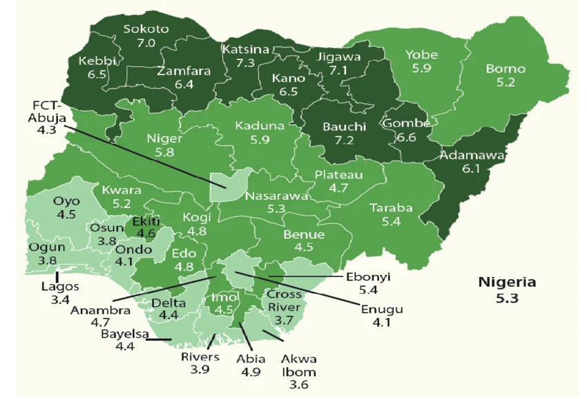 Total fertility rate by state. Credit: Okafor Samuel